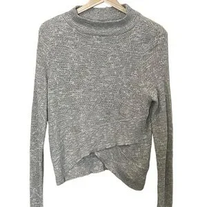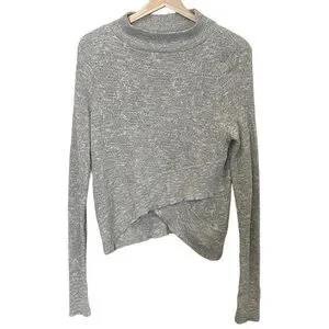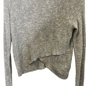 Free People Linen Boho Wrap Crossover Long Sleeve Sweater Top Size S Gray