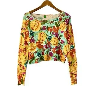 🛑SOLD Farm Rio Long Sleeve Cropped Floral Sweater Size XS