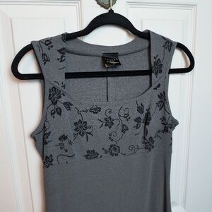 Vintage B. Moss Elegant Modest Floral Sleeveless Maxi Tank Dress 6 Gray/Black