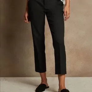 Midrise. Straight leg. Polished piece and looks brand new. I’ve never worn them because I need a high rise.