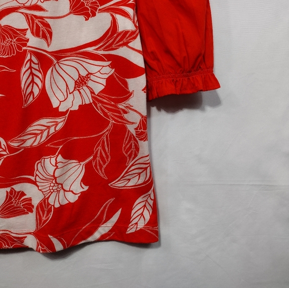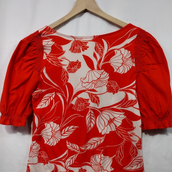 NWT Anthropologie Maeve Woven Puff-Sleeve Top Women's S Red Floral Retro 90s