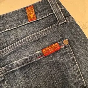 7 FOR ALL MANKIND | Midrise Women’s Distressed Slim Straight Blue Jeans Size 28