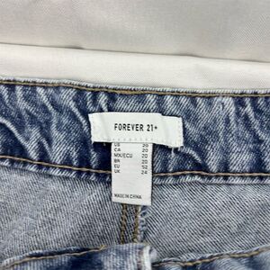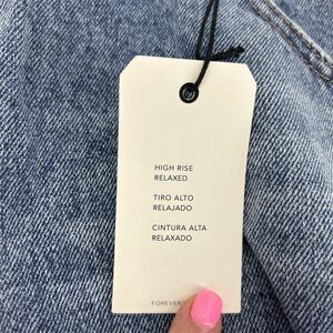Keywords: FOREVER 21, women's jeans, relaxed fit, casual style, blue denim, distressed, frayed hem, cotton, modern fashion, durable, comfortable, everyday wear, new with tags, trendy, versatile.