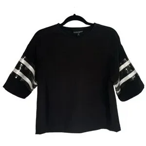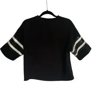 Cynthia Rowley Sequin Striped Sleeve Sports Jersey Top Small