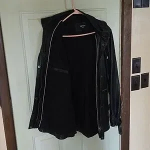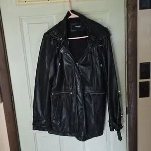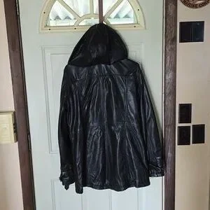 Women's three quarter length soft leather jacket with removable hood, only wore 2 times size medium