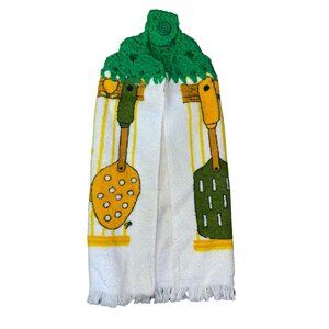 Vintage Handmade Kitchen Towel Used Hanging Crochet Top