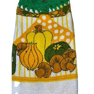 Vintage, 70s, Hanging Dish Towel, Mushrooms, Vegetables