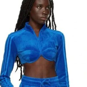 NWT - Adidas X Jeremy Scott Blue Velour Crop Top Track Jacket