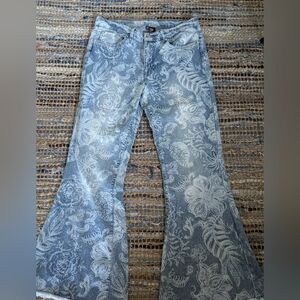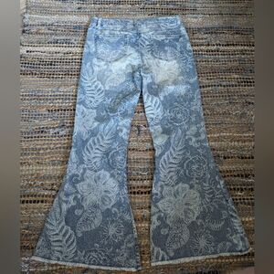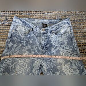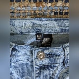 DG2 Diane Gilman Women's Jeans Cropped Flare Blue & White Allover Print SZ 14P
