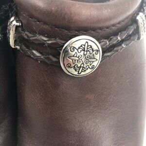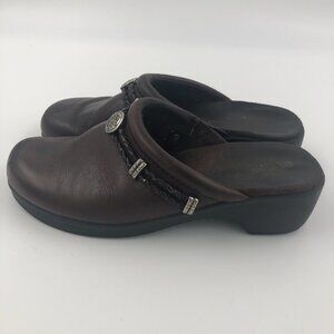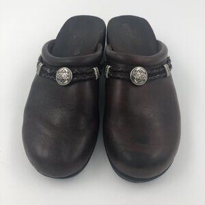 MINNETONKA Brown Leather Clogs with Leather Braid and Silver Trim 7M