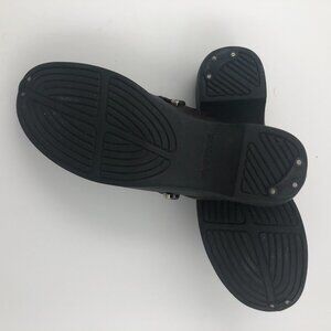 Uber-comfortable clogs you'll want to wear all day, every day! Clogs have taps applied to heels and toes to extend the life of the soles. The size has worn off, but shoes measure 9.5" on the inside, which equates to a size 7M. Excellent pre-owned condition.