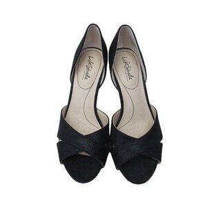 LIFE STRIDE WOMEN BLACK HEELS SZ 10M -SATIN FABRIC UPPER-PARTY-COCTAIL