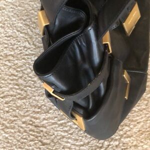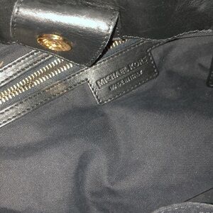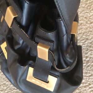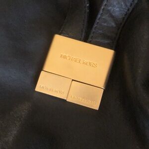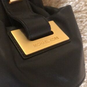 Michael Kors "Beverly" Large Black Leather Gold Hobo Satchel Tote Bag