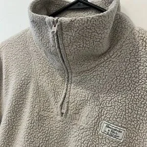 Abercrombie & Fitch Women’s Sherpa 3/4 Zip Sweater Cream size Medium