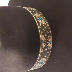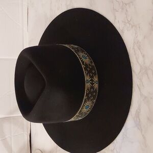 This classic Fedora style hat from Lack of Color is too perfect. This amazing piece is trimmed with Vintage 'Rising Sun' French Ribbon from the 1960's. With it's beautiful silhouette and detailed blue and gold ribbon accent, this hat adds the perfect touch to any look- whether day or night. Can we please just live in this hat?!?!
