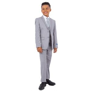 Solid Light Grey Notch Lapel 5 Piece Perry Ellis Boy's Suit