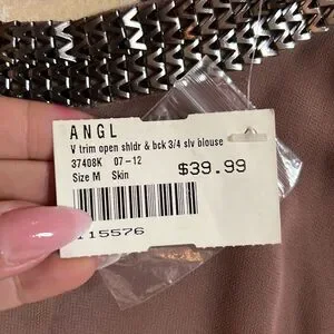 Brand new. Never used. Stunning too. Size medium. It is see thru so you’ll have to put something underneath it.