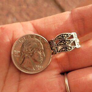 Vintage 925 sterling silver Art Deco style swirl marcasite pinky or midi ring