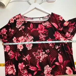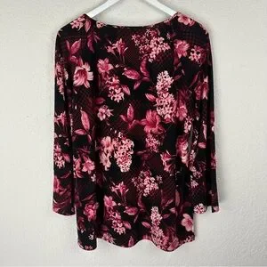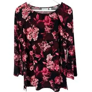 Susan Graver Medium Floral Liquid Knot Top Slit Detail Sleeve
