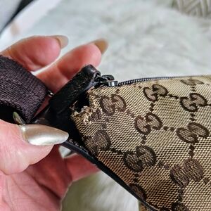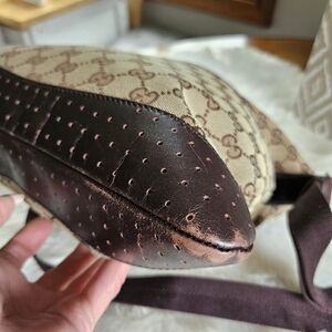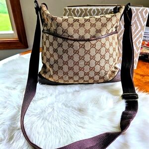 Gucci Authentic vintage perforated leather trim crossbody bag medium ! very good used condition (wear on corners & minor rub wear by top) all seen in pics ! Nice crossbody zipper works perfectly 12"L x 12"H strap is adjustable & perfect condition