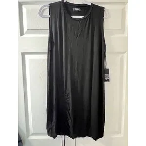This Michael Lauren sleeveless dress is perfect for a casual day out or a night on the town. It is made from a soft and stretchy fabric and features a relaxed fit. The dress has a scoop neck and a drawstrings in the front if you would like to synch it up on one side if you want to give it a sexier look. It’s versatile for day or night!