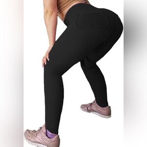 NWOT Ruched Scrunch Butt Shaping Yoga Pants Butt Lifting High Waisted Tummy Control Leggings Exercise Workout Black Tights Size L, Large