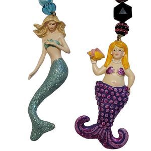 Glitter Mermaid Resin Christmas Ornament Coastal Decor Shell Bra Beaded