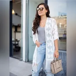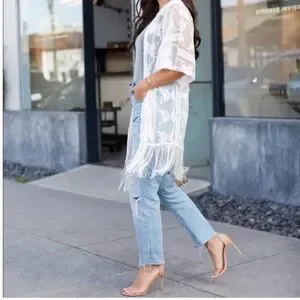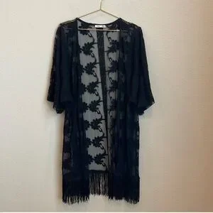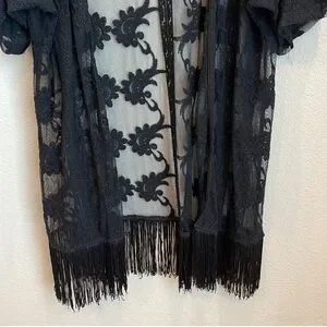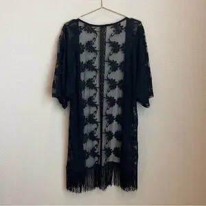Dex Sheer Fringe Lace Kimono Size Large