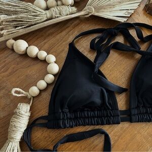 Black halter bikini top with front double strap detail. Brand New with tags.