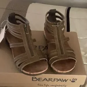 Adorable brown Bearpaw sandals with zippered detail. Size 6W.