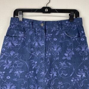 Vintage Jones Wear Sport Floral Denim Midi Skirt with Floral Painted Pattern 10