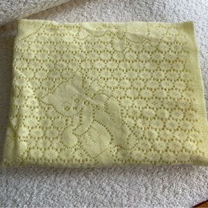Vintage MCM 70s Pastel Yellow Soft Baby Blanket Teddy Bear Design