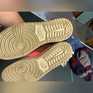 Really cool Jordan 1 retro rebel “utility pack” high top shoe. Size 8. Beige, black and pink