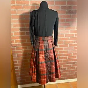 Leslie Fay women’s size 6 black and red plaid dress. This dress has been well loved by me, but it’s time for me to part ways with it! It’s so cute and fits very nicely, and is excellent quality.