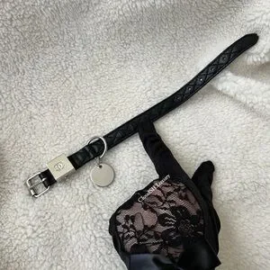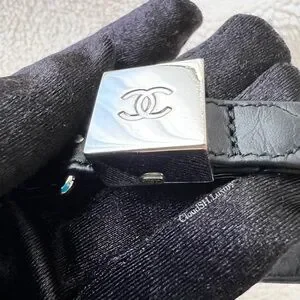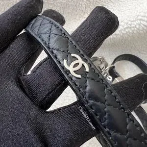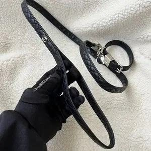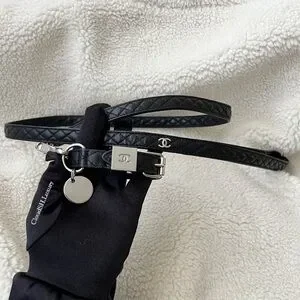 Auth Chanel Black Quilted CC Logo Dog Collar & Leash Set - Size Small