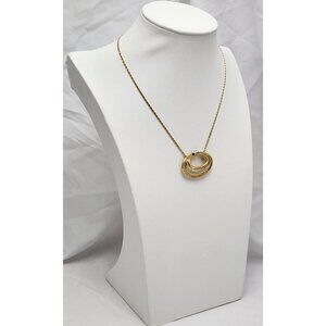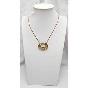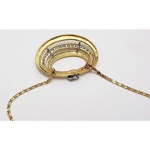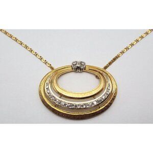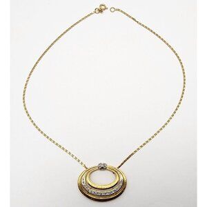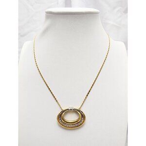 Vintage 18K Two Tone Multi Color Gold Diamond Oval Pendant Link Chain Necklace