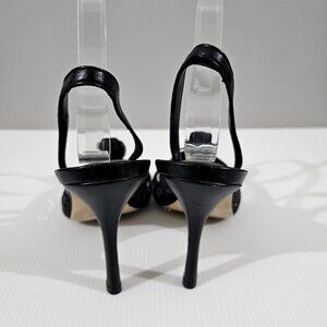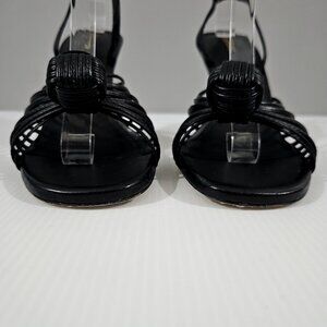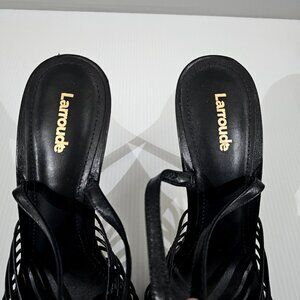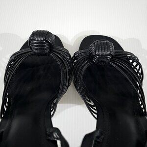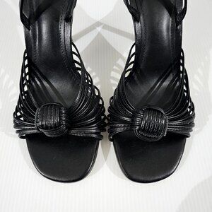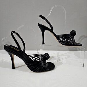Larroude Valerie Slingback Knotted Sandal Stiletto Black Leather Size 9.5 NWOT