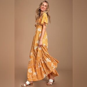 Lulus Savanna Golden Yellow Floral Print Maxi Dress