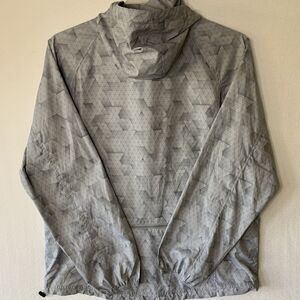 Asics Men Windbreaker Jacket Hood Water Wind Resistant Grey Large Pockets Zipper