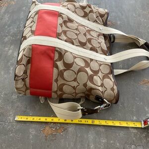 Beautiful and heavy duty, Coach bag, gently used and in excellent condition. This bag can hold enough for a three day weekend and then some! Easily over your shoulder, cross body or over one shoulder.