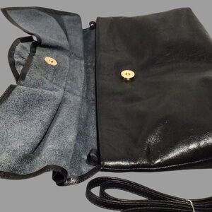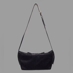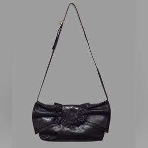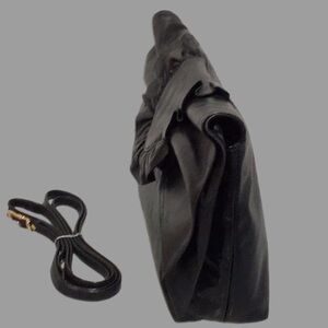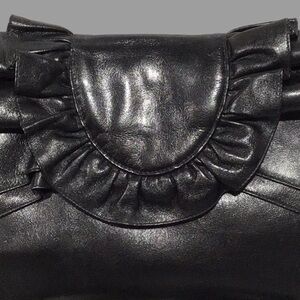 This vintage leather clutch/shoulder bag by SUSAN GAIL is absolutely gorgeous! The super-soft leather forms into a large bow with a ruffled front tab on the front. The removable shoulder strap laces through 2 inner loops. Other features and details include: