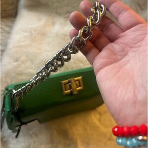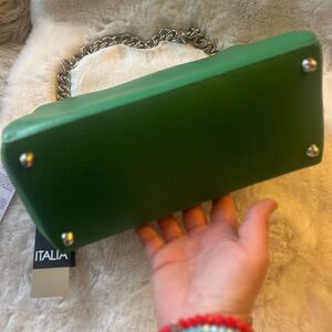 Viola Castellani Leather Shoulder Bag Green with Chain Made In Italy