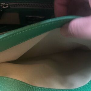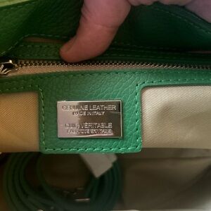 This beautiful Viola Castellani shoulder bag is the perfect addition to any outfit. Made in Italy with high-quality leather and silver chain, this bag is both stylish and practical. The bag features a zip closure and a detachable strap, allowing for versatile wear. The exterior is a gorgeous green color with silver hardware, while the interior is lined for added protection. This bag is perfect for any woman looking for a high-quality accessory that will last for years to come.