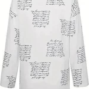 Tunic blouse blk/white script pattern. Loose fit. nwot Great spring summer Beach