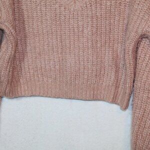Forever 21 womens sweater size L peach eyelash knit v neck cropped cozy casual