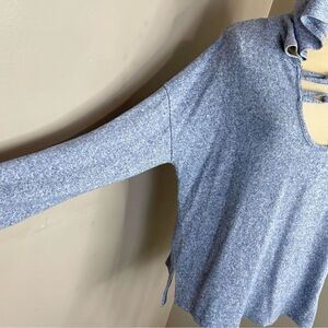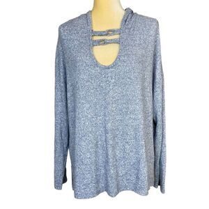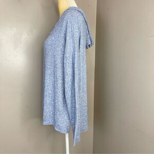 Hoodie Long Sleeve Blue White Marled Soft Hi-Low