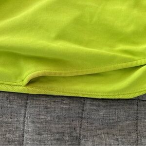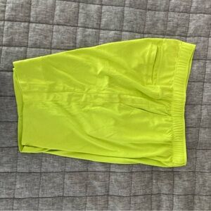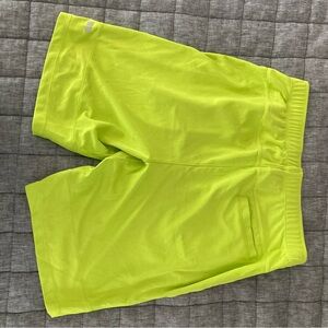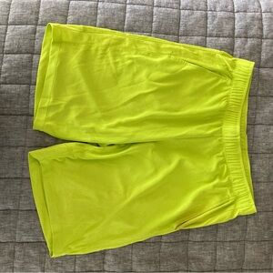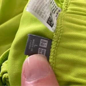 Uniqlo 11" tennis shorts in fluorescent yellow, size L. Worn a fair amount, but not stinky and no holes. The only real thing is some discoloration on the left pocket from when I shoved tennis balls in there. This is an 11" inseam and I've gone to shorter shorts.