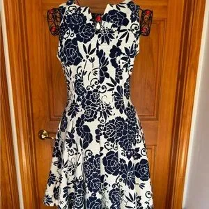 Danny & Nicole Sleeveless Dress, Size - 8, Blue & Cream
