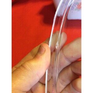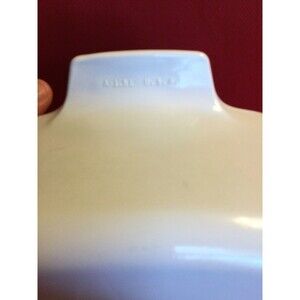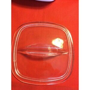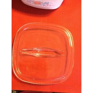 measures 8 3/4"including handles x 7" x 3" tall A-1.5L casserole with Pyrex glass lid (Lid has tiny sliver on inside rim as shown)