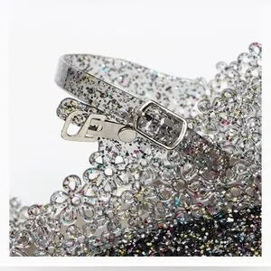 ✨🌈Colourful Glitter on Transparent Black Jelly Wedge (37)